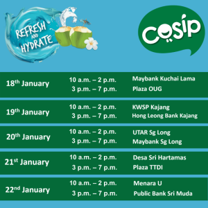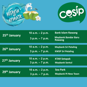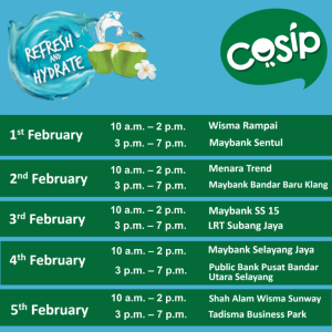 Cosip Coconut Water team will be roving and visiting your neighbourhood! Come get your thirst-quenching drink from us with our HUAT Chinese New Year Cosip Coconut Water promo! 😉
